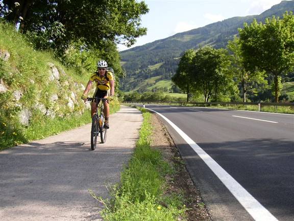departing from the restaurant in Winklern I see a rider on a road bike zooming