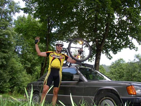 alarm clock rings at 4:40am. I load the mountain bike on my mom’s car and leave
