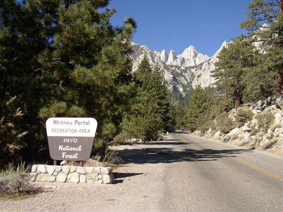 after the road turns back due West it arrives at the so-called Whitney Portal.