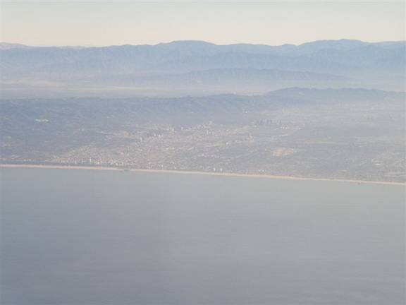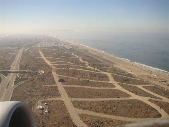 away my stuff. We take off on time over the sandy beaches of the Pacific Ocean