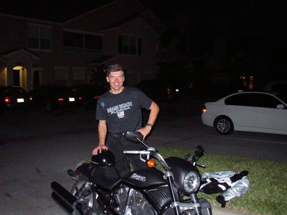 after a shower and fresh cloths I ride my Harley the 2-3 miles downtown to join