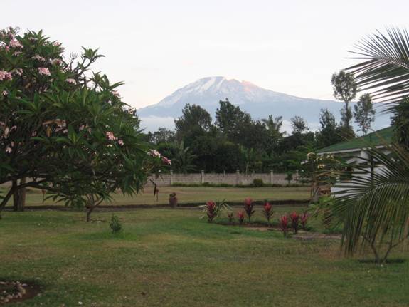 We stay at the AMEG lodge in Moshi overnight. When we step out of our cabin in the