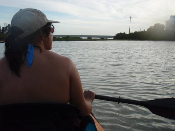 warm weather, as we don’t have a spray skirt on the sit-a-top kayak. Paddling