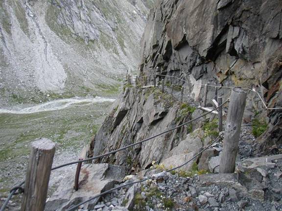 steep rock formations, which the path needs to cross climbing up to the hut.