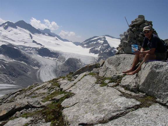above the Kuersinger hut. I take my boots off, apply more sunscreen, drink and