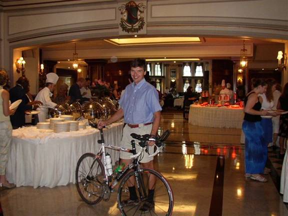 the situation, posing for what I call the Colnago-Commercial in the lobby: