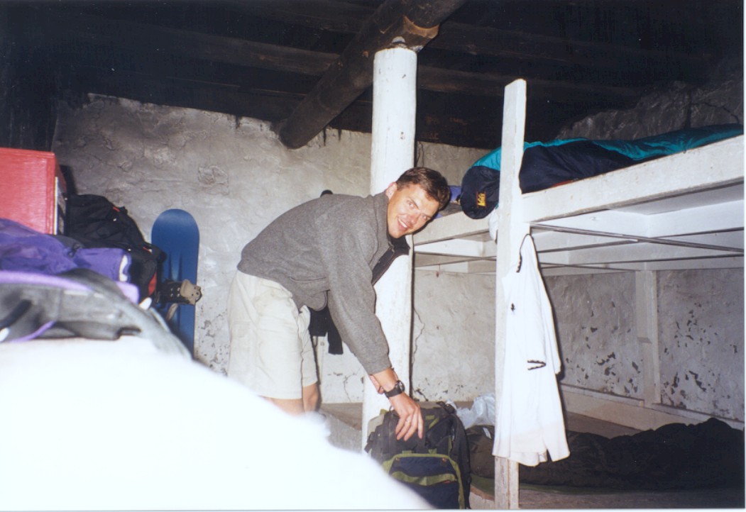 Dienstag, 10. August: War Mt. Hood ähnlich zur Königsspitze in Italien, so ähnelt Mt. Rainier dem Mt. Blanc in Frankreich: Die 2-Tages-Tour, die Übernachtung auf der Hütte in relativ großer Höhe, der nächtliche Aufbruch, der Sternenhimmel mit Milchstraße so klar, daß man vor lauter nach oben schauen fast stolpert, die Höhe, die massiven Gletscher usw. Sowie mein Vater und ich 1984 vor 15 Jahren im August auf den Mt. Blanc unterwegs waren, so ist es heute beim nächtlichen Aufbruch. Da ich das Wochenende bewußt gemieden hatte, ist es unter der Woche weniger voll - wir sind zu sechst in einem Schlafraum für vielleicht 15-20, also viel Platz. Mein Ruhepuls liegt bei 100, also gut doppelt so hoch wie im Tal (auf der Gouter-Hütte war er bei 120; letztere ist allerdings auch 700m höher auf 3800m). Die anderen stehen kurz vor Mitternacht auf; an richtigen Schlaf ist daher nicht zu denken. Man döst so vor sich hin und die Gedanken schweifen hinauf auf den Berg und an die bevorstehenden Stunden.