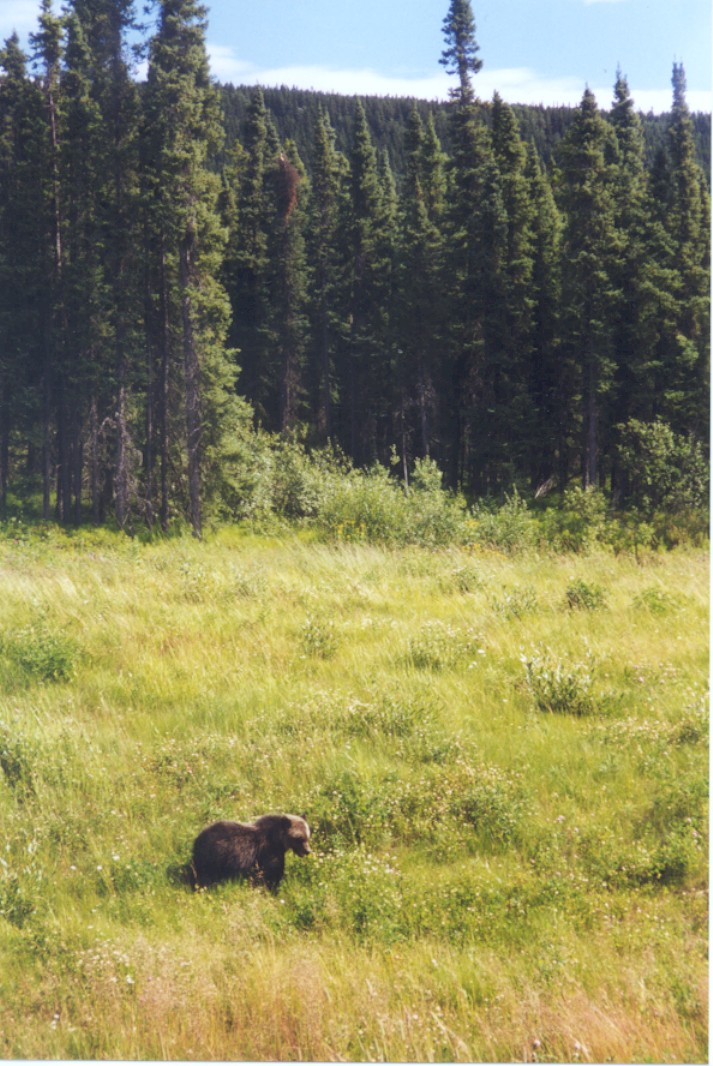 Auf dem Icefield Parkway sah ich dann auch meine ersten Bären, 2 Black Bears direkt neben dem Highway und 1 Grizzly Bear auf der anderen Seite eines weiten Flußbetts. Langsam wird die große, weiträumige Landschaft, Wälder, Berge bis zum Horizont ohne menschliche Eingriffe (Straßen, Häuser, Skilifttrassen, Hochspannungsleitungen usw.) mehr und mehr zum gewohnten Bild. Mir scheint, man muß diese Weite sprichwörtlich erfahren, um sie richtig einordnen zu können. Derartig weiträumige, noch völlig urtümliche und wilde Landschaften gibt es in Europa nur noch wenig, in Deutschland und Alpenraum praktisch nicht mehr. Das macht sicher einen Teil der Faszination für die vielen Touristen von Europa aus, insbesondere Deutsche und Schweizer.